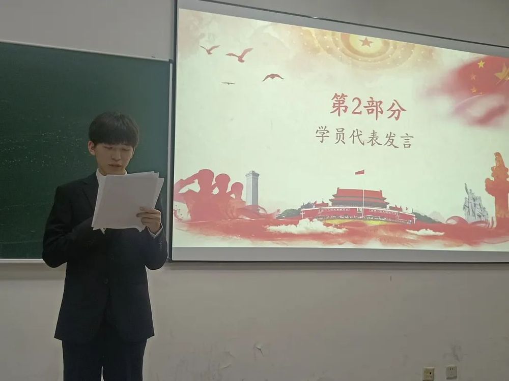 其次,学员代表冯斌就党校培训班的性质进行了发言,号召在座学员要意识到自身肩负的责任,不断提高自身能力,居安思危,做一个有志的中国青年。