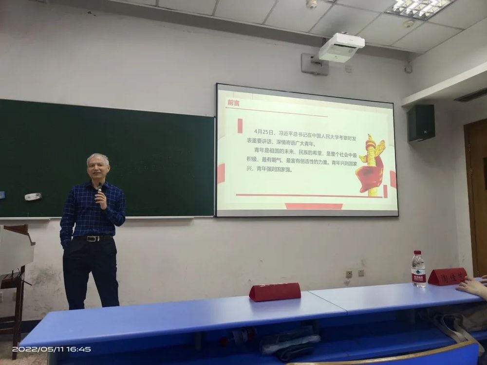 首先,许金根老师以“坚定不移听党话跟党走,努力成长为堪当民族复兴重任的时代新人”为主题进行了党课讲解。基于习近平总书记在中国人民大学的重要讲话让大家紧跟党的领导,传承红色基因,扎根中国大地,肩负历史使命,坚定前进信心,不负韶华,不负时代,不负人民,在实现中华民族伟大复兴的时代洪流中踔厉奋发、勇毅前进,随后又基于习近平总书记在共产主义青年团成立100周年大会上的讲话金句,叮嘱在座学员争当有理想、敢担当、能吃苦、肯奋斗的新时代好青年,端正入党动机,从理想信念着手,践行社会主义核心价值观。
