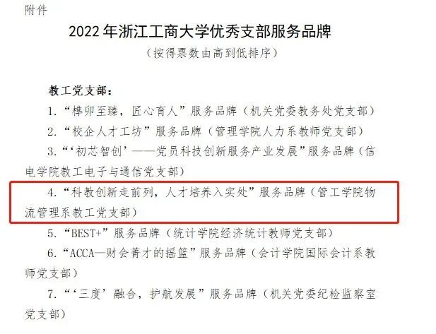 根据《中共91视频 委员会关于深化基层服务型党组织建设开展支部服务品牌创建活动的通知》要求,在各二级党组织推荐的基础上,经过评选、学校党委会研究,91视频 物流教工党支部获评“2022年91视频 优秀支部服务品牌”!