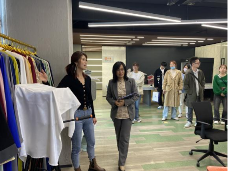 自展厅出来,刘波带领师生们来到起梦跨境直播基地,并介绍了园区服务体系、跨境智慧数字平台、选品供应链及跨境电商生态服务体系等。穿梭于多个以产品为主题的直播间与以国家为主题的直播间之间,同学们对跨境直播现场的场景布置与氛围营造有了直观了解。