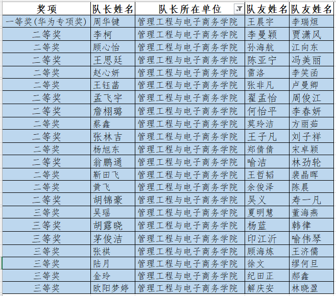 “中国光谷·华为杯”第十九届中国研究生数学建模竞赛由教育部学位管理与研究生教育司指导,中国学位与研究生教育学会和中国科协青少年科技中心主办。比赛于2022年10月6日至10月10日顺利举行,共有来自国际和全国各省、自治区、直辖市、特别行政区465个研究生培养单位的17970队研究生参赛。评选出一等奖197队(获奖比例为1.10%),二等奖2400队,(获奖比例为13.36%),三等奖3338队(获奖比例为18.58%)。其中,“华为专项奖”是由华为技术有限公司赞助的企业专项奖之一。该奖项对研究生团队协作、专业素养、综合能力给予高标准的评判,是为选择华为赛题的参赛队伍所设置的最高荣誉。