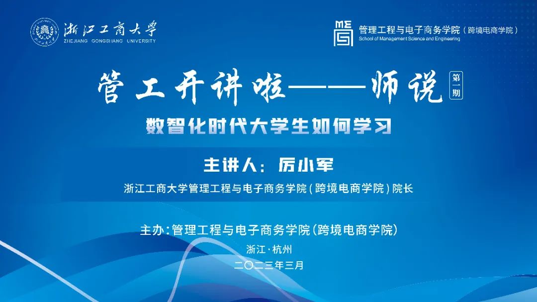 为营造学院良好的学术氛围,整合教学资源,提升学生综合素质,学院开设《管工开讲啦——师说 / 学长说 / 校友说》,就专业前沿、学术研究、产业发展、学科竞赛等领域,以讲座、研讨等形式,邀请专业教师、杰出校友、优秀学生等与师生进行交流、互动,激发师生对相关领域的学习、研究兴趣,培养崇德尚学、守正创新的院训精神。