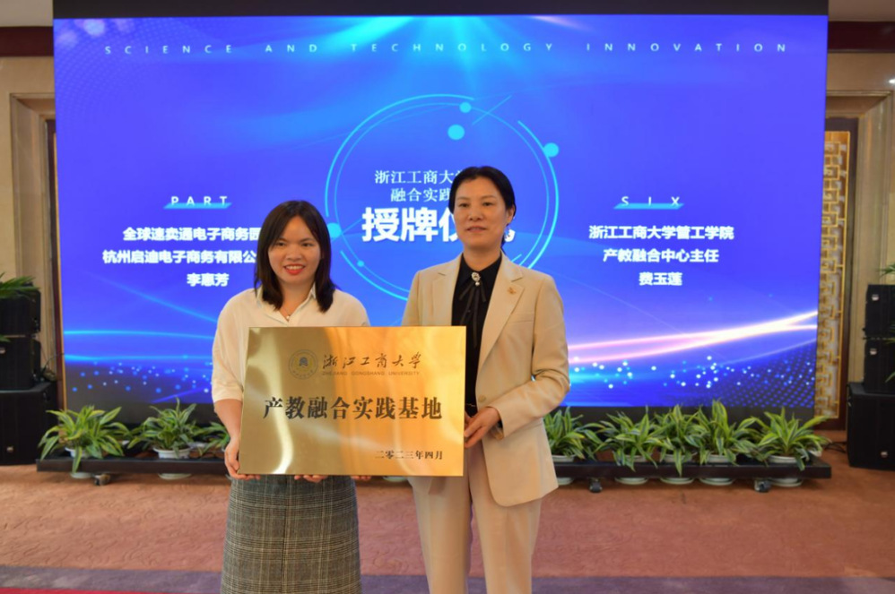会上,杭州市临平区电子商务协会秘书长单位杭州启迪电子商务有限公司被授予“91视频 产教融合实践基地”。