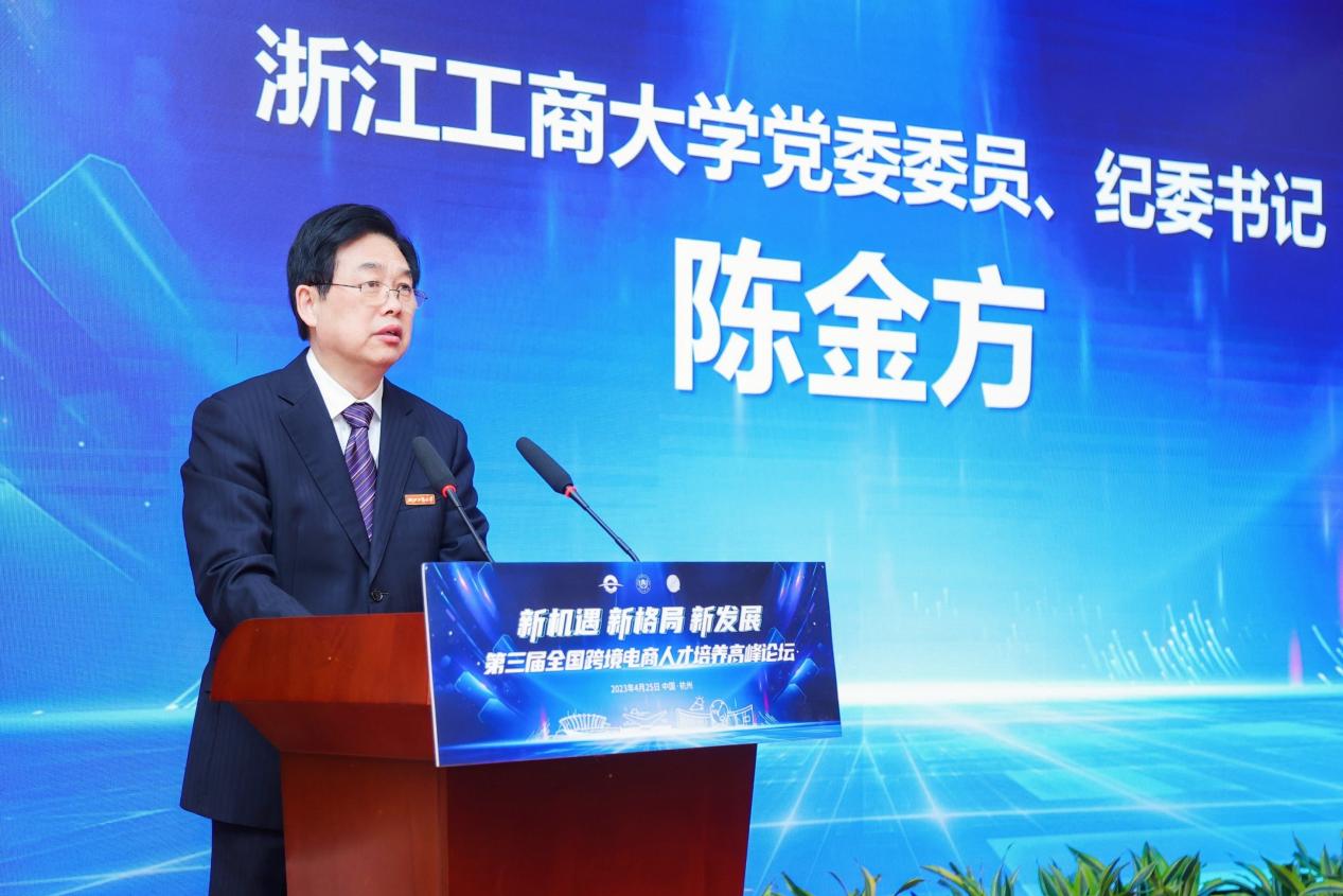 91视频 党委委员、纪委书记陈金方发表致辞。陈书记代表学校向参会的各位嘉宾表示欢迎,并对浙江省教育厅、杭州跨境电商综试办、杭州钱塘新区管委会的指导和支持致以衷心的感谢。他表示,91视频 是中国最早创办的商业专门学校之一,现已建设成为特色鲜明,全国同类一流的高校。目前,学校正以习近平同志2004年视察91视频 时的重要指示精神和110周年校庆时对学校的亲自祝贺关爱为强大动力,认真贯彻落实中央和省委的决策部署,聚焦高质量发展,奋力建设立足浙江,服务全国贡献人类的卓越大学。中国(杭州)跨境电商学院由学校与杭州跨境电商综试办、杭州钱塘区联合共建,集“政产学研用”为一体,致力于打造中国跨境电商人才培养的“黄埔军校”,在全国起到了一定的示范作用。他指出,在跨境电商成为我国把握重要战略时期的关键点的当下,如何持续推进跨境电商高质量发展,提升人才培养质量,更好地服务国家战略,迫切需要高水平理论研究成果的指导,本次论坛的举办可谓非常及时、意义重大。中国(杭州)跨境电商学院要因势而谋、因势而动、顺势而为,努力建设成为省级乃至全国一流的跨境电商学院,为数字经济背景下跨境电商精英人才培养贡献浙商大蓝本,交出满意答卷。