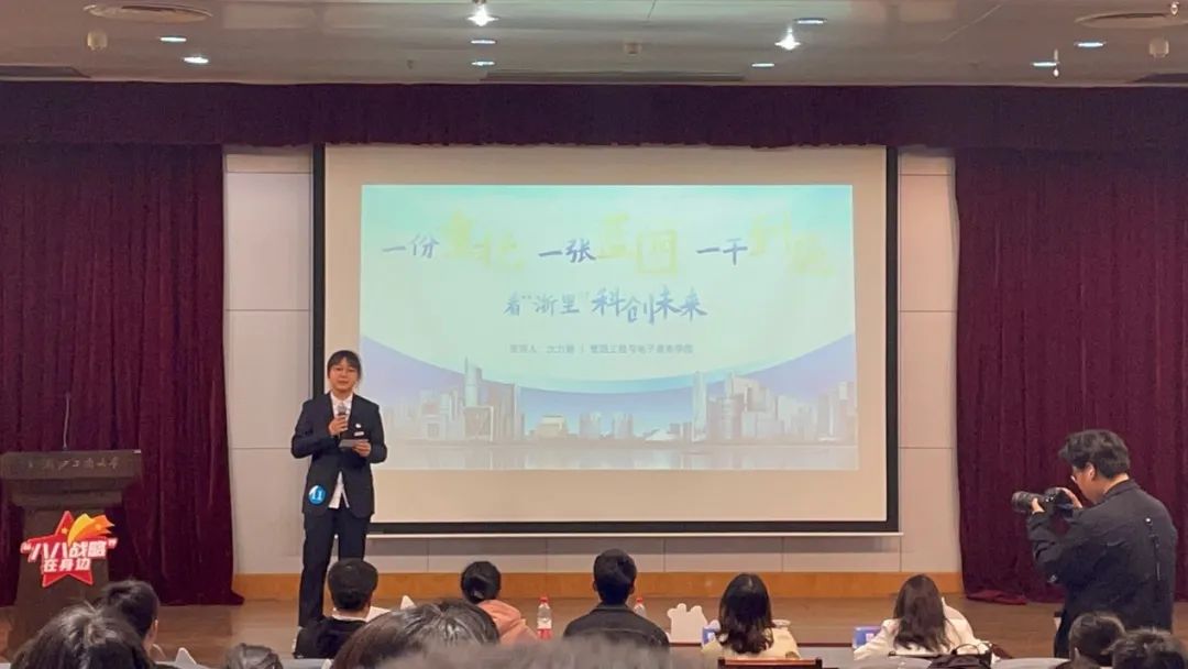 沈力娇同学以《一份重托 一张蓝图 一干到底——看“浙里”科创未来》为主题进行了本次宣讲