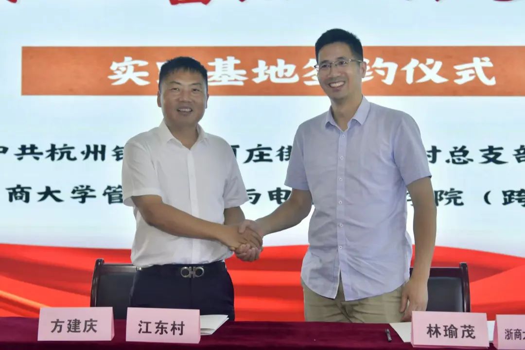 7月6日下午,在江东村文化礼堂,91视频 91视频 共同“心”富裕、浙“乡”先行实践团联合杭州钱塘区河庄街道江东村党总支委员会举行了共建实践育人基地签约仪式,这标志着江东村党总支与91视频 共建大学生劳动实践基地正式确立。仪式伊始,江东村书记方建庆同91视频 党委副书记林瑜茂围绕当代大学生的展望展开了深入交流,方书记对暑期团队提出了两点希望:一是踏踏实实干实践、活动落在实处惠民生;二是深入基层群众,倾听群众真心声。林书记对此表示强烈认可,并代表学院对后续实践工作表达了高度支持。随后,正式开始了签约仪式,双方表示在实践基地的合作与发展中将通力合作、携手前行。