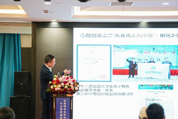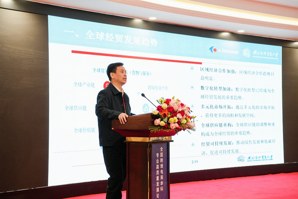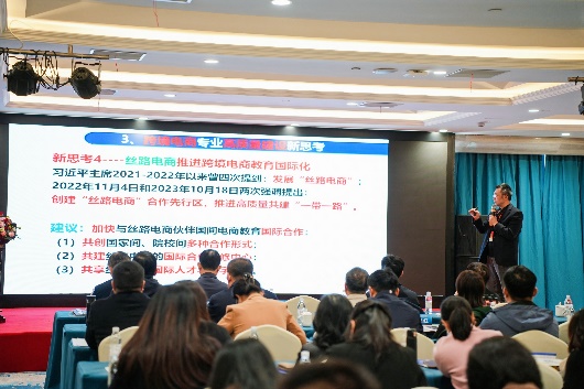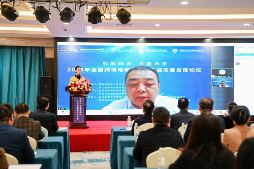 刘军主任在致辞中对本次论坛的顺利召开表示祝贺,他指出全国跨境电商专业的本科院校数量已从2020年的7所上升到了现在的98所,如何培育出适应数字经济时代要求的高质量跨境电商人才,是摆在我们面前的重要课题。他对各个高校提出了三点期望:一是要立足当地区位优势和数字贸易的发展特点,对接国家需求,深化跨境电商专业人才培养模式改革与创新;二是要聚焦本科高校跨境电商一流专业建设的要求,不断丰富和完善培养方案,不断总结专业核心课程建设的经验,探索跨境电商专业建设标准评价体系;三是要紧密对接国家十四五电子商务规划要求,依托所在地的区位和产业等优势,着力开展数字贸易、跨境电商数字规则和跨境物流等方面的科学研究。
