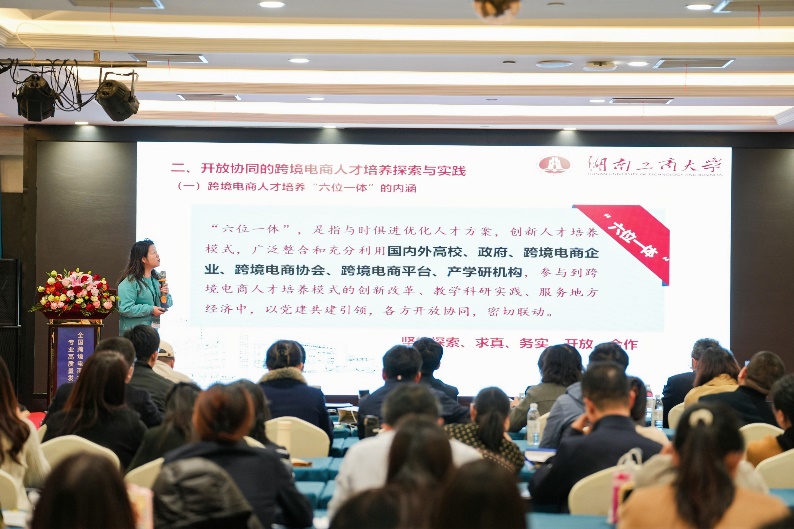李琪教授介绍了跨境电商实战赛的设置与实践,对全国大学生电子商务“创新、创意及创业”挑战赛跨境电商实战赛道的发展历程、前期设置、竞赛流程、赛道概况、创新发展等进行了详细阐述。武长虹总经济师结合杭州跨境电商的实践提出了培养出优秀的电商人才的新思路,她认为跨境电商行业要按照加强高校跨境电商专业人才培养筑牢人才“蓄水池”、推进跨境电商人才社会化培养激活发展“新引擎”和举办各类跨境电商赛事下好人才集聚“先手棋”。章剑林教授以“跨境电商产教融合的方法与策略”为主题,总结了跨境电商专业课程体系构建的“三个依据、三个步骤和三个保障”,指出课程体系的构建要契合跨境电商产业特征与趋势,遵循跨境电商专业教育教学的规律,体现出本校的基础与特色。彭丽芳教授则重点介绍了电子商务专业跨境电商方向的师资培养,她指出高尚的思想品德、持续的终身学习、强大的教学团队、高超的教学能力是电子商务专业一流教师的师资培养的总体目标。