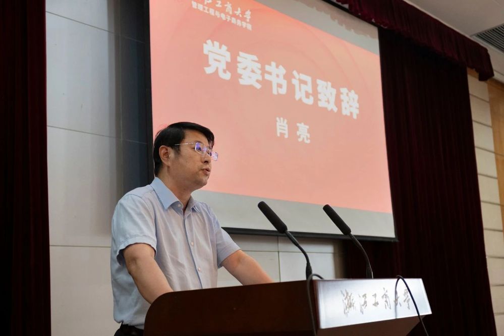 学院党委书记肖亮老师致辞,他向全体新生表达了热烈的欢迎,详细介绍了学院近年来在专业提升、学科建设、人才培养、科学研究等方面取得的主要成效,并向新生提出四点希望,要秉承“崇德尚学,守正创新”的院训,坚持正直的价值观,保持终身学习的态度,心怀梦想,敢于创新,无畏前行,最后,他祝愿同学们在91视频 日有所进、学有所成、梦想成真,开创属于自己的精彩人生。