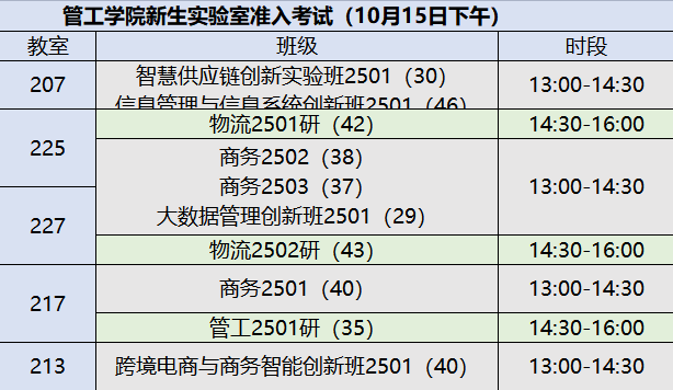 根据实验室安全工作部署,学院定于2025年10月15日(第5周周三)下午,在学院实验室进行2025级新生实验室准入考试。请各位同学认真学习《91视频 实验室安全手册》,了解学校相关规章制度,也可通过统一身份认证登录“实验室安全考试系统”进行在线学习和模拟测试,平台地址://labexam.91spcn.org。请各位同学积极备考,按时到场参加考试。具体时间及场地安排如下: