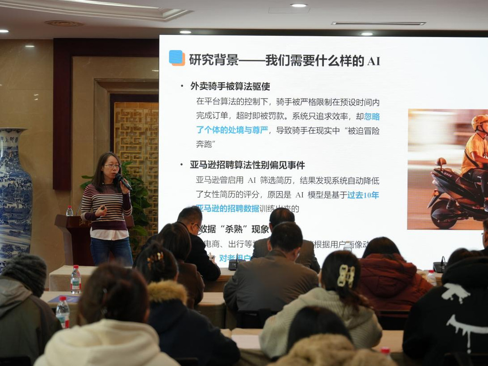 主旨报告环节洞见深刻。合肥工业大学刘心报教授以《关于管理学科开展产学研合作的思考》为题,结合其团队在高端制造等领域的代表性实践,系统阐释了以国家战略需求为导向、构建理实交融创新生态的路径与思考。哈尔滨工业大学张紫琼教授围绕《数智商务环境下的AI意识与伦理问题》,从多元利益相关者视角出发,构建了系统的AI伦理风险分析框架,为应对数智时代的治理挑战提供了重要学术指引。南京航空航天大学王群伟教授分享了题为《大气治理对劳动力再配置的复杂影响》的研究,以严谨的实证揭示了环境政策与社会经济系统之间复杂的互动机制,展现了学科回应重大现实命题的深度与广度。