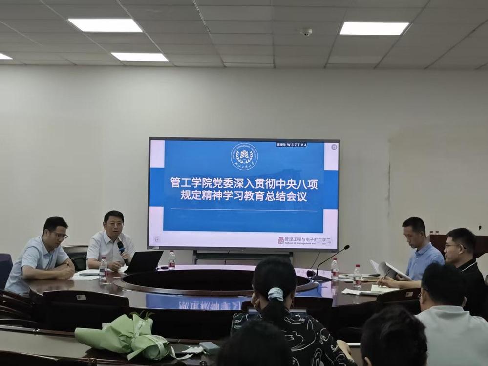 2025年9月18日,管工学院召开深入贯彻中央八项规定精神学习教育总结会,总结学院学习教育开展情况,巩固学习教育成果,推进作风建设常态化长效化。学院党委书记肖亮、副院长季敏、副书记林瑜茂、副院长李进及教职工代表参加会议。